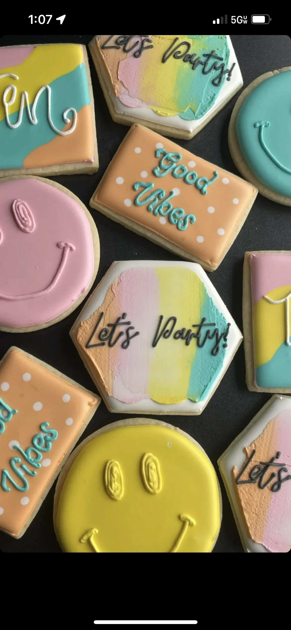 We know a number of great cookiers in our area who can create magic with icing! The above pictured set was made for our Good Vibes & Sunshine theme by BnB Customs! Pick up and delivery by our crew is available.